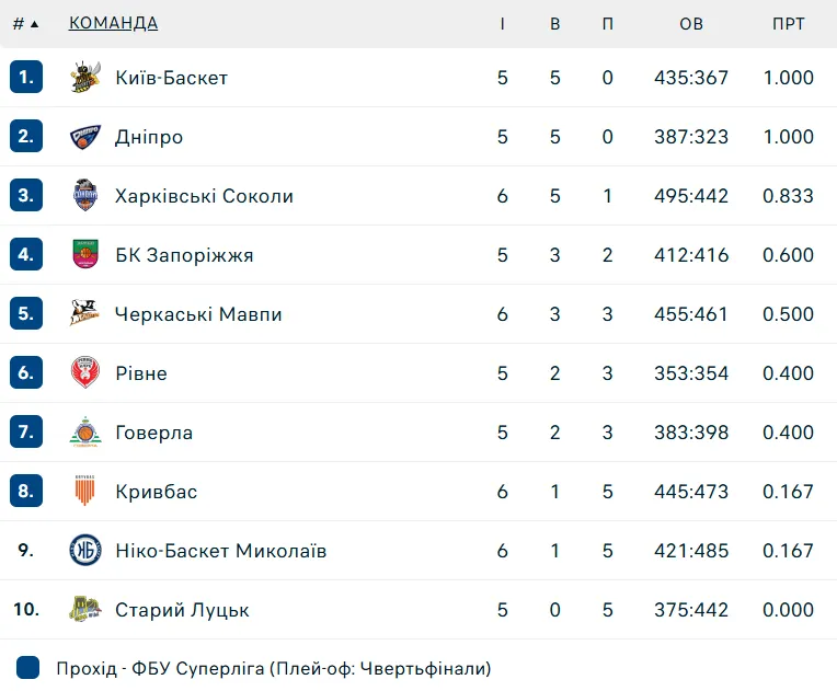 Турнірна таблиця Суперліги України з баскетболу після третього ігрового тижня: лише дві команди не програвали