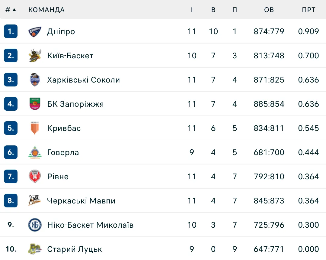 Завершився ігровий день у Суперлізі: турнірна таблиця чемпіонату України з баскетболу після сьогоднішніх матчів