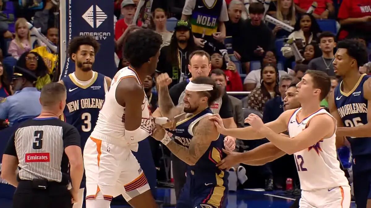 У розпал матчу регулярного сезону НБА між Фініксом та Нью-Орлеаном емоції на майданчику вийшли з-під контролю після контакту центрового Санз Марка Вільямса та оборонця Пеліканс Хосе Альварадо.