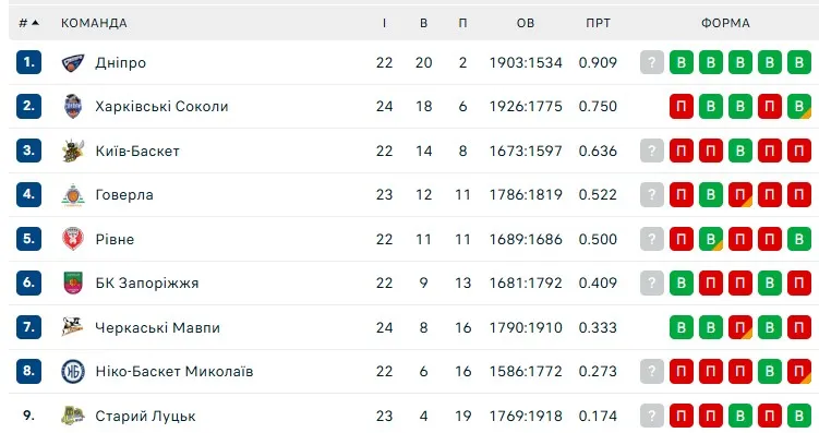 Долю матчу між Харківськими Соколами та Черкаськими Мавпами визначив один кидок: турнірна таблиця Суперліги