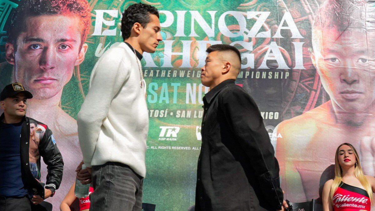 PROTECTING HIS TURF 🏆@Divino_Espinoza and Arnold Khegai face to face in Mexico!#EspinozaKhegai | SAT Nov 15 at 8PM ET | Top Rank Classics on Roku, Vizio, & Tubi. pic.twitter.com/RNfSJRc7Ro