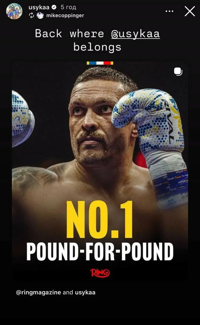 Український боксер відреагував на те, що тепер посідає перше місце – українець опублікував допис сторіс у своєму Instagram.