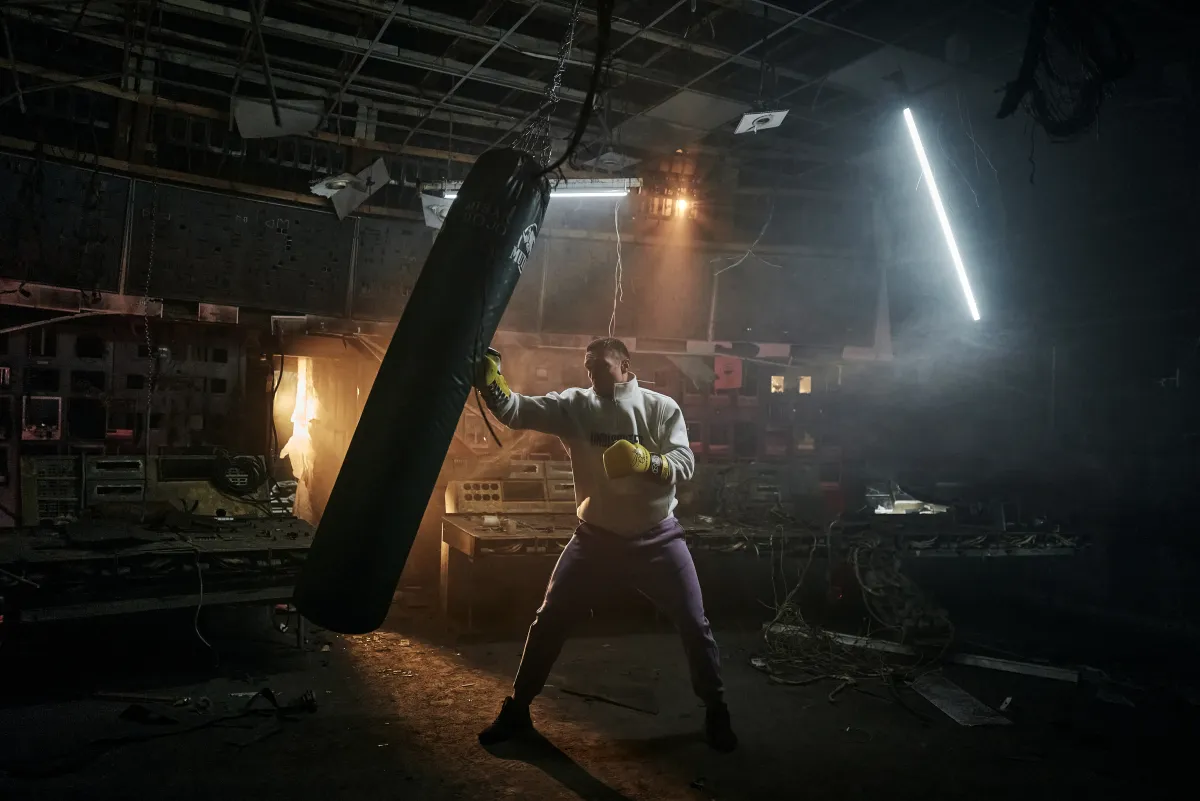 Локація підкреслює контраст між руйнуванням цивільної інфраструктури та стійкістю українського спортсмена, який продовжує готуватися до поєдинків на найвищому рівні.