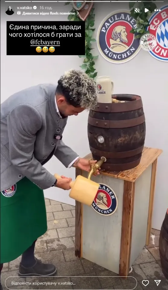 Віктор поширив відео від Баварії, яка має спільне партнерство з мюнхенською пивоварнею «Paulaner» під час знаменитого фестивалю Октоберфест, що проходить з 20 вересня по 5 жовтня.