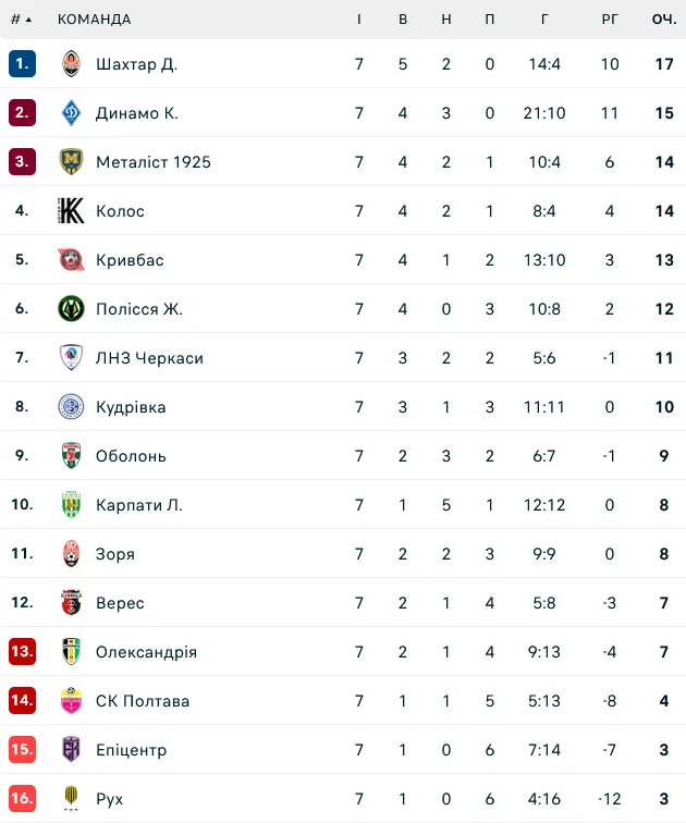 Сьогодні завершився сьомий тур чемпіонату України сезону 2025/26. Динамо втратило лідерство, пропустивши Шахтар на першу сходинку турнірної таблиці.