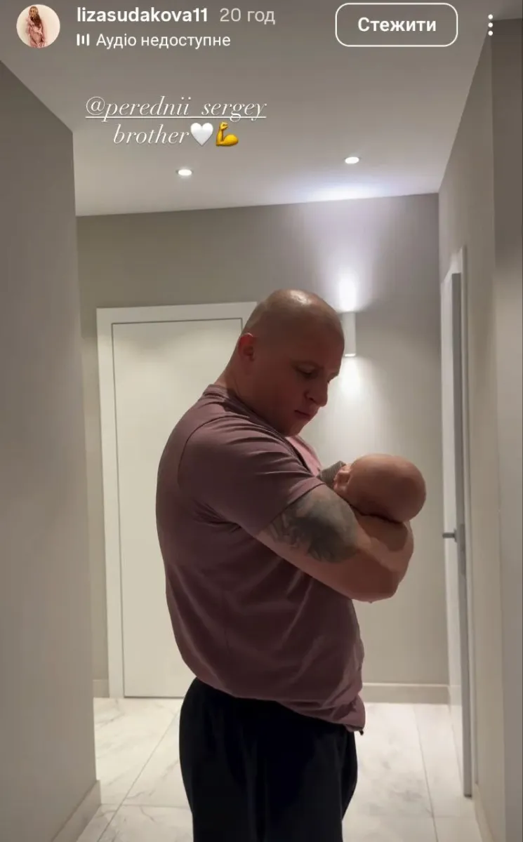 Дружина футболіста Бенфіки і збірної України Георгія Судакова, Єлизавета, після народження другої дитини показала свого брата Сергія, який плекає немовля.