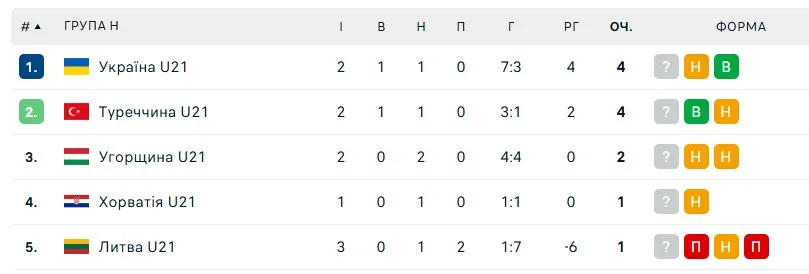 Сьогодні, 10 жовтня, відбулося два поєдинки в групі Н кваліфікаційного раунду молодіжного чемпіонату Європи 2027 року. Збірна України сенсаційно втратила очки у грі зі збірною Угорщини, а Туреччина перемогла Литву.