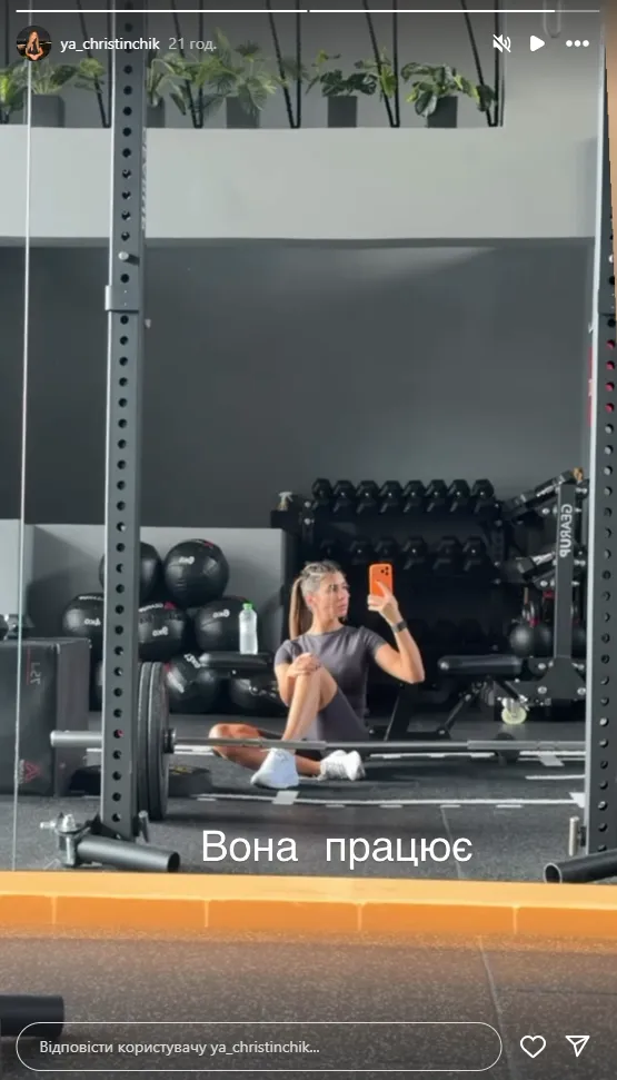 Кохана нападника збірної України та грецького Олімпіакоса Романа Яремчука Христина активно публікує світлини зі свого життя у соцмережах. У своєму Instagram жінка опублікувала фото з тренування у залі, показавши, як підтримує форму.