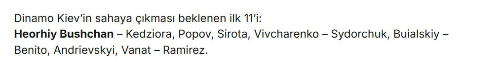 Видання Samsunsporgazetesi стверджує, що у стартовому складі Динамо на матч проти Самсупспора можуть вийти Георгій Бущан, Томаш Кендзьора та інші колишні гравці киян.