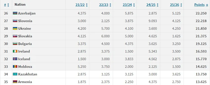 Крім того, наша країна збільшила відрив від Болгарії, а також скоротила відставання від Словенії, Румунії, Угорщини, Сербії, Хорватії та Азербайджану.