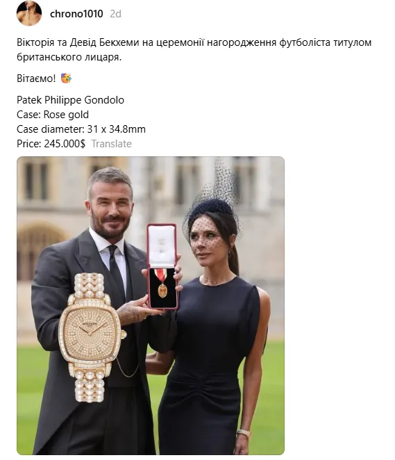 Дружина Девіда Бекхема обрала годинник, який коштує цілий спадок: ось як він виглядає