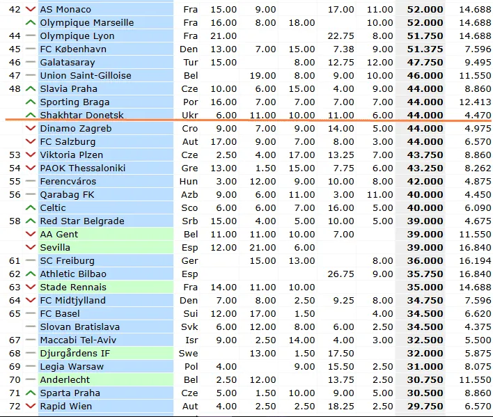 «Гірникам» вдалося піднятися одразу на чотири позиції (48 місце) і обійти загребське Динамо, австрійський Зальцбург, чеську Вікторію та грецький ПАОК.