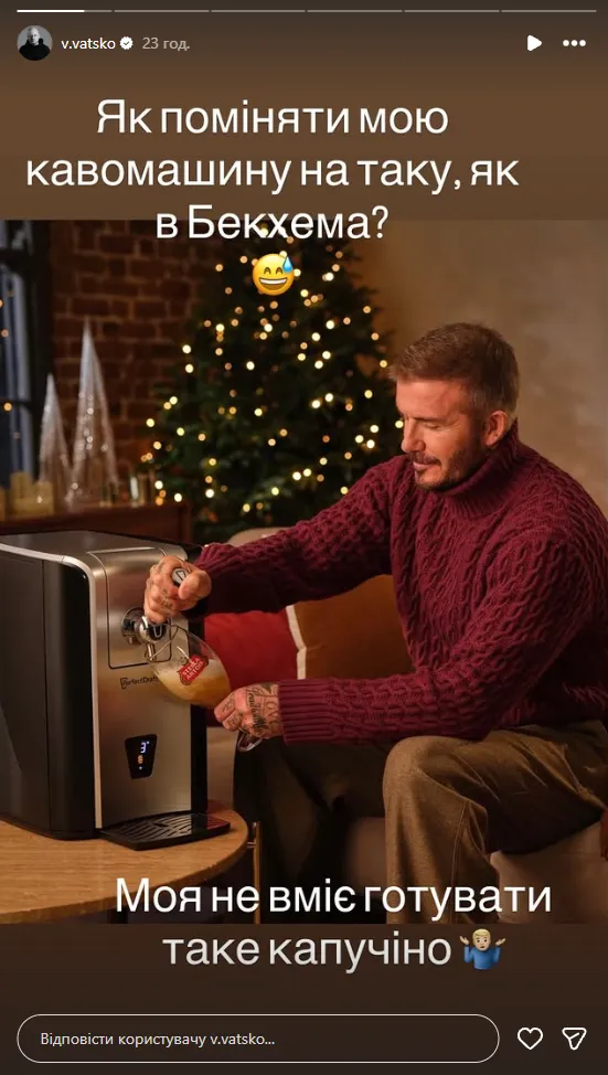 «Як поміняти мою кавомашину на таку, як в Бекхема? Моя не вміє готувати таке капучіно», – жартома написав Вацко.