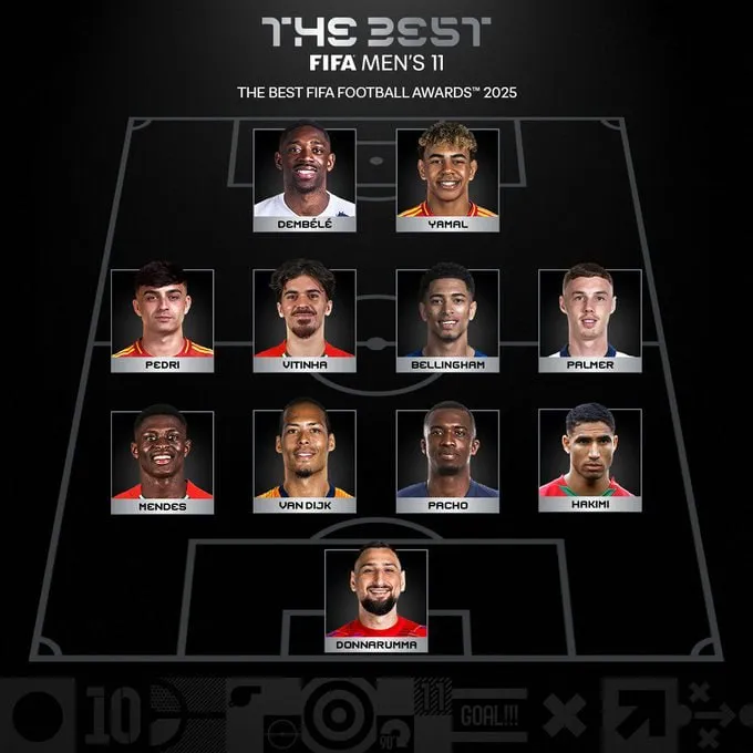Також ФІФА визначила символічну збірну за підсумками 2025 року: