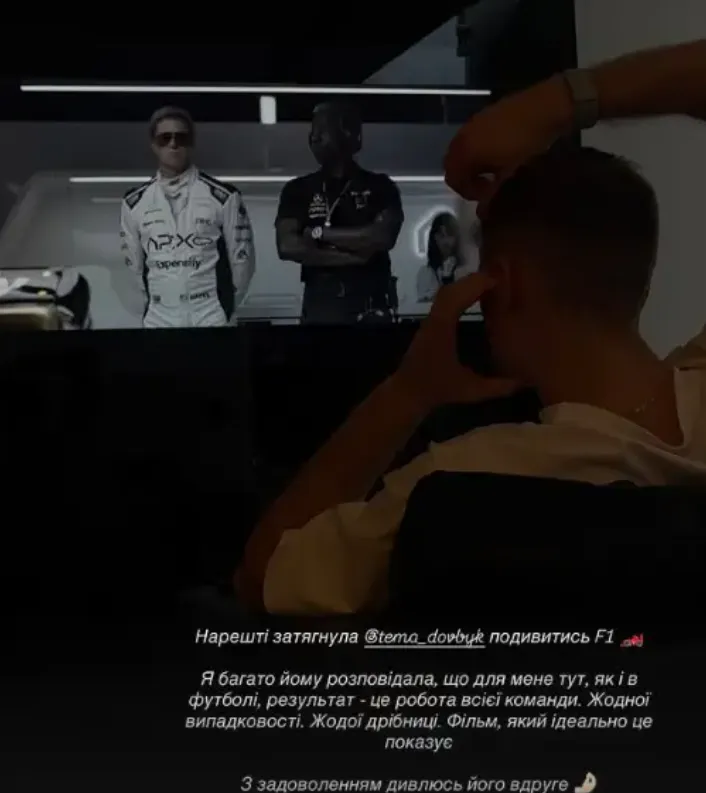 «Нарешті затягнула подивитися «F1». Я багато йому розповідала, що для мене тут, як і в футболі, результат – це робота всієї команди. Жодної випадковості. Жодної дрібниці. Фільм, який ідеально це показує. Із задоволенням дивлюсь його вдруге», – написала Юлія у своєму Instagram.
