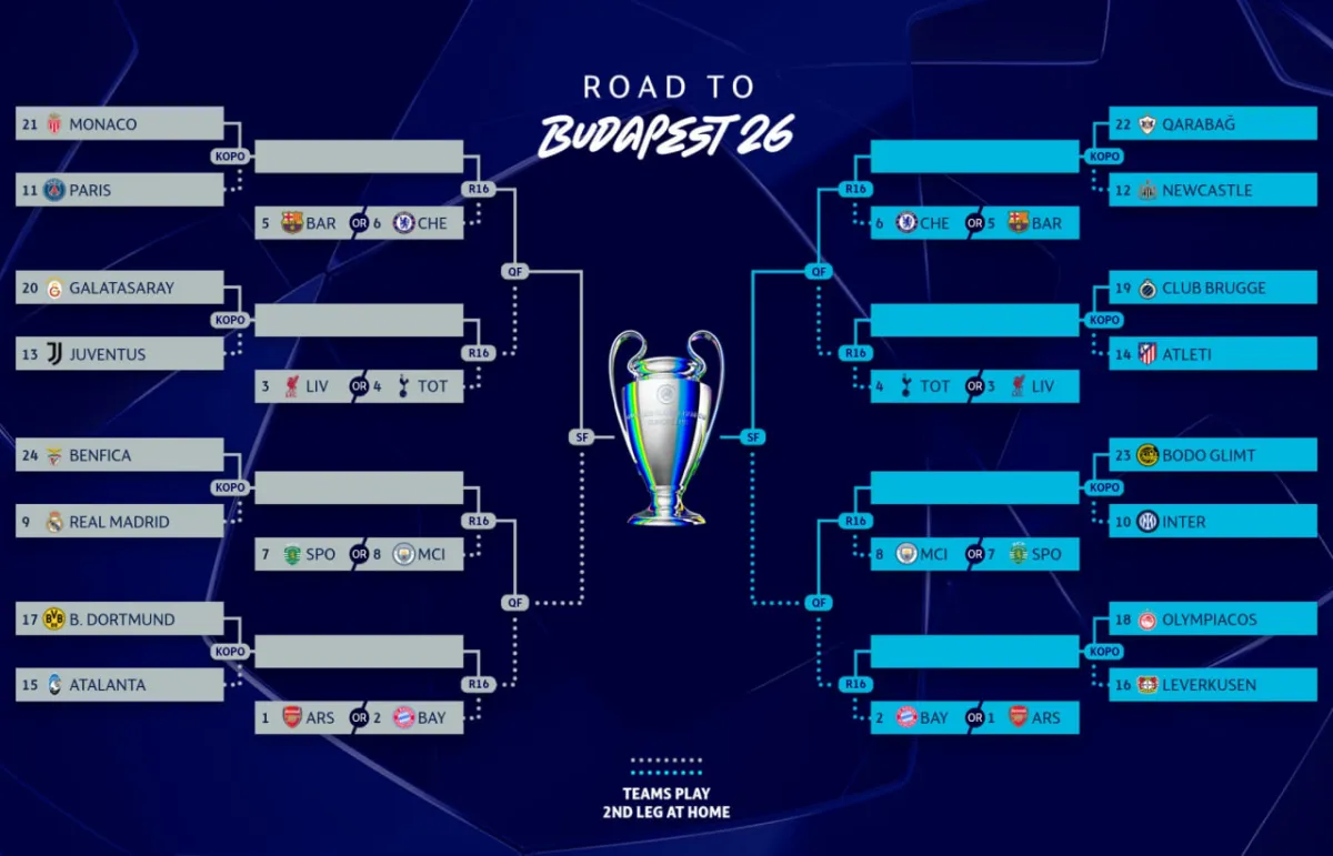 Переможці вийдуть до 1/8 фіналу, де на них вже чекають Арсенал, Баварія, Ліверпуль, Тоттенгем, Барселона, Челсі, Спортінг та Манчестер Сіті.
