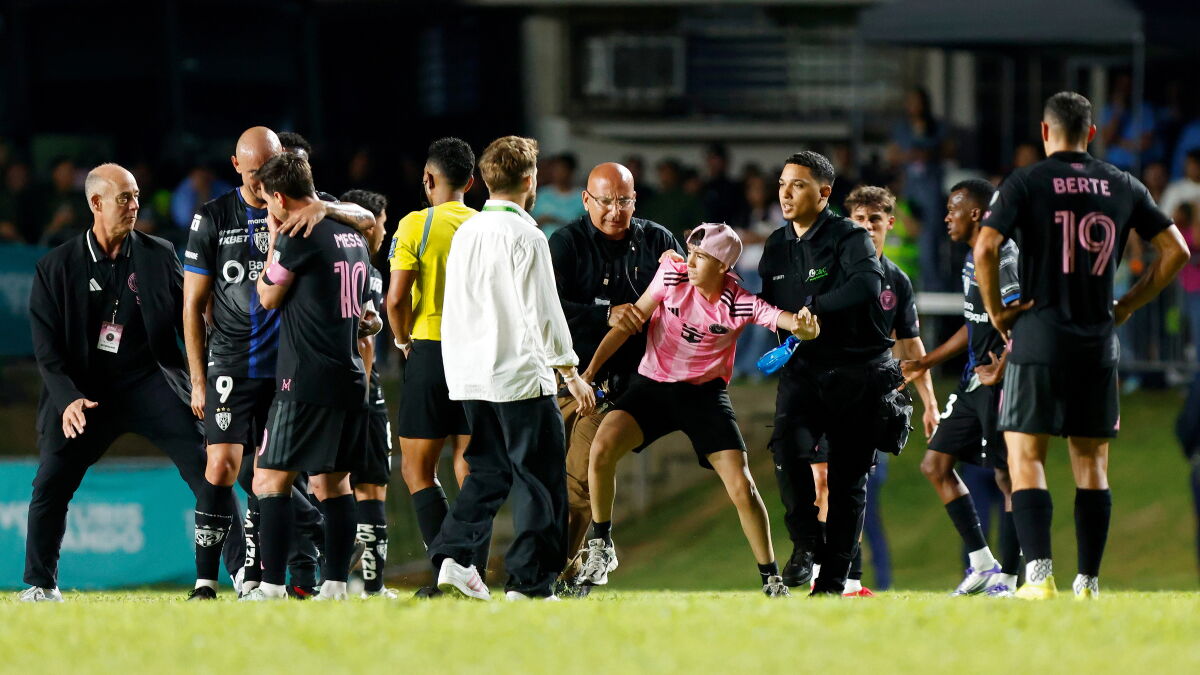 На останніх хвилинах зустрічі, яка закінчилася перемогою команди із Маямі, на поле вибігли декілька вболівальників. Поки зірковий аргентинець фотографувався з одним із них, інший обхопив футболіста ззаду, після чого через втручання охорони впав разом і з ним на газон.