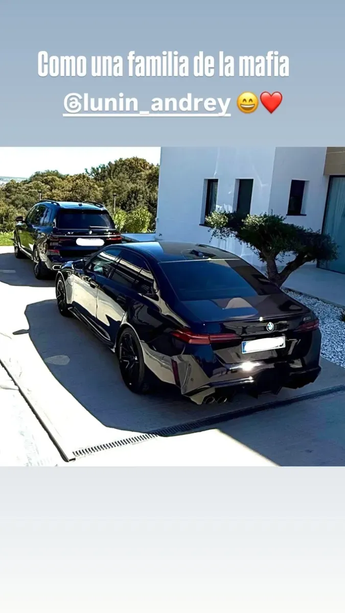 Кохана голкіпера мадридського Реала та збірної України Андрія Луніна оприлюднила в Instagram світлину із автопарком їхньої сім'ї з двома BMW.