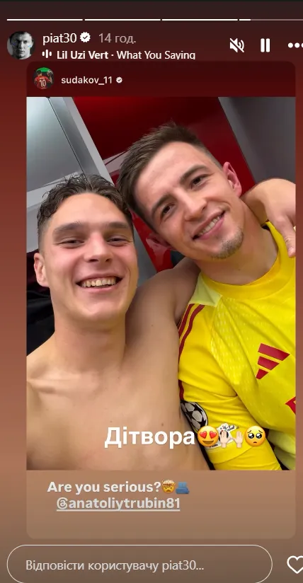 «Дітвора»: Пятов відреагував на фото Судакова і Трубіна після перемоги Бенфіки над Реалом