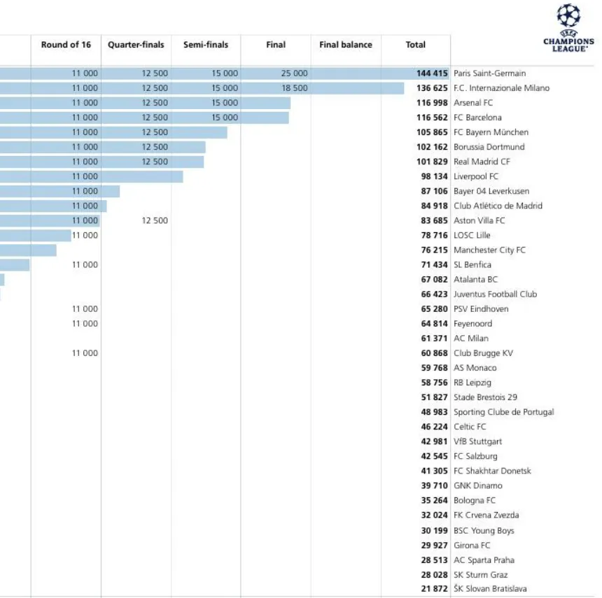 Заробітки команд у Лізі чемпіонів сезону 2024/25