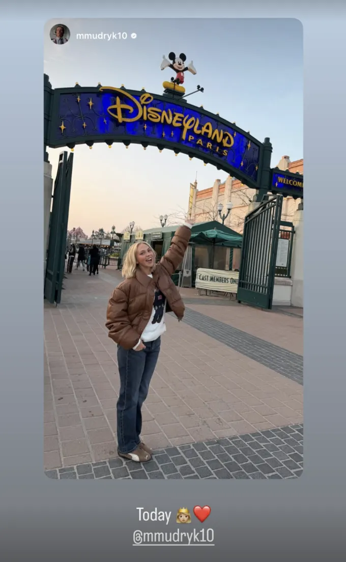 «Шість місяців тому цей хлопець весь час написував мені і запрошував до Парижу в Діснейленд, і я його заблокувала. Сьогодні я з Мудриком», – розповіла Джонс в Instagram.