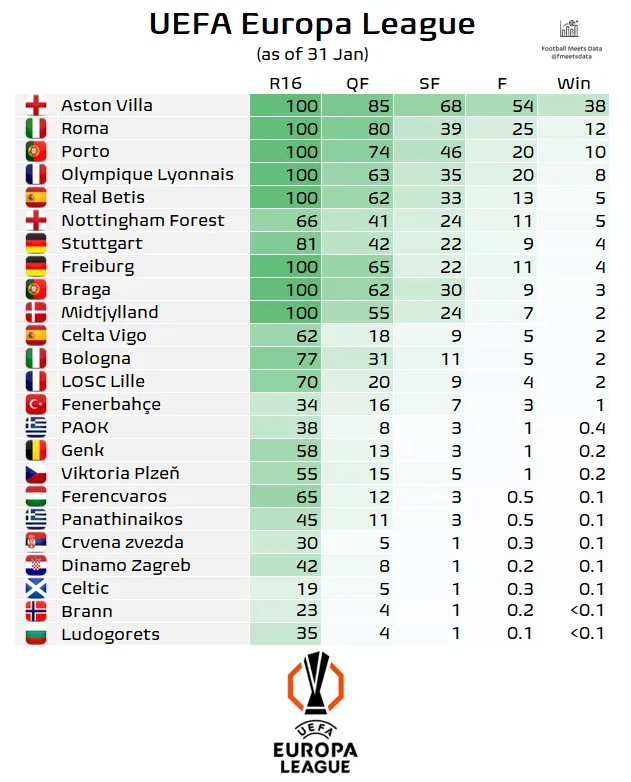 Аналітичний портал Football Meets Data у власному Х-акаунті опублікував прогноз на Лігу Європи 2025/26 після завершення загального етапу.