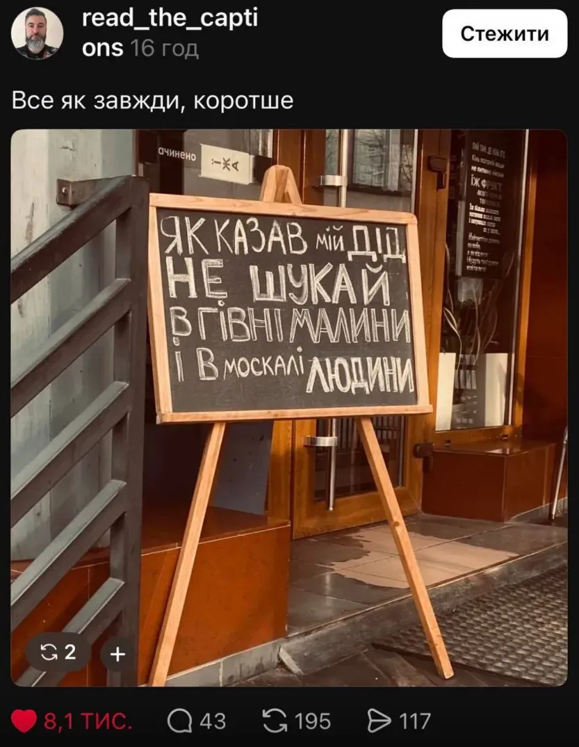 «Як казав мій дід: «Не шукай в г**ні малини, і в москалі – людини», – сказано на картинці, яку опублікувала обраниця футболіста.
