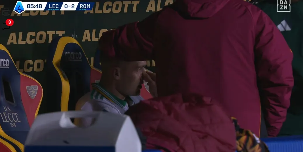 В об’єктиви камер потрапила реакція українського форварда Роми Артема Довбика на свою заміну через травму у гостьовому матчі з Лечче (2:0) у 19-му турі Серії А.