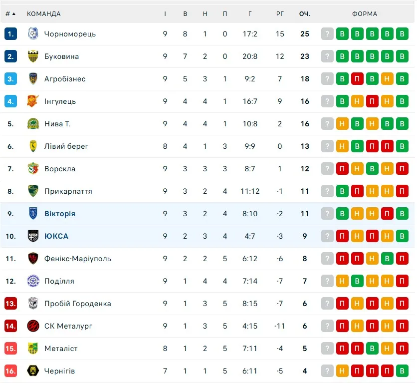- Завдяки цій перемозі Вікторія посунула клуб ЮКСА з дев’ятої сходинки турнірної таблиці. Лідирує в чемпіонаті Чорноморець, який на два очки випереджає Буковину. Агробізнес відстає від лідера на сім пунктів.