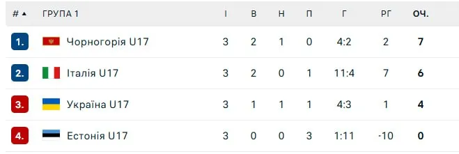 Турнірна таблиця в групі 1