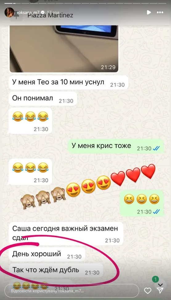 Після переможного поєдинку третього туру відбору на чемпіонат світу між збірними України та Ісландії (5:3) дружина півзахисника синьо-жовтих Руслана Малиновського, Роксана, поділилася в соцмережах кумедним фрагментом листування з подругою.