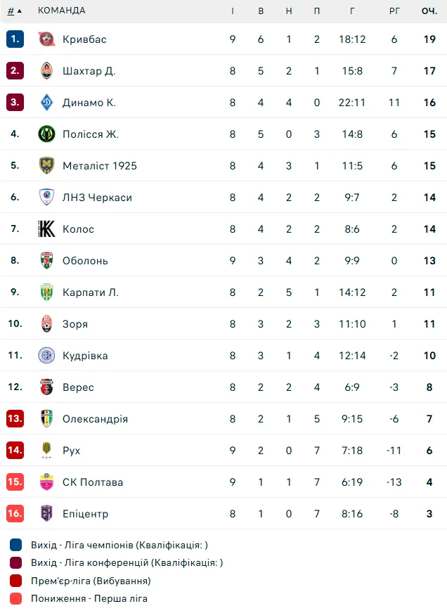 - У цьому турі Динамо і Шахтар ще зіграють свої матчі, але принаймні тимчасово Кривбас очолив турнірну таблицю УПЛ. Поки що криворіжці випереджають «гірників» на два очки, а киян – на три.