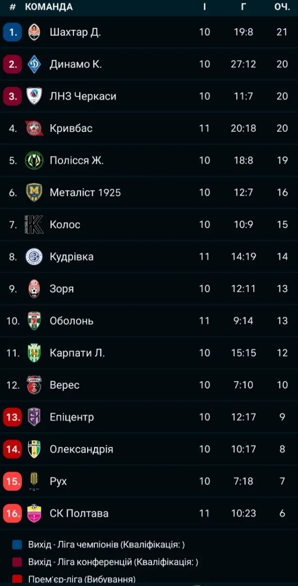- СК Полтава все ще займає останню сходинку, маючи у своєму активі лише шість очок після 11 зустрічей.