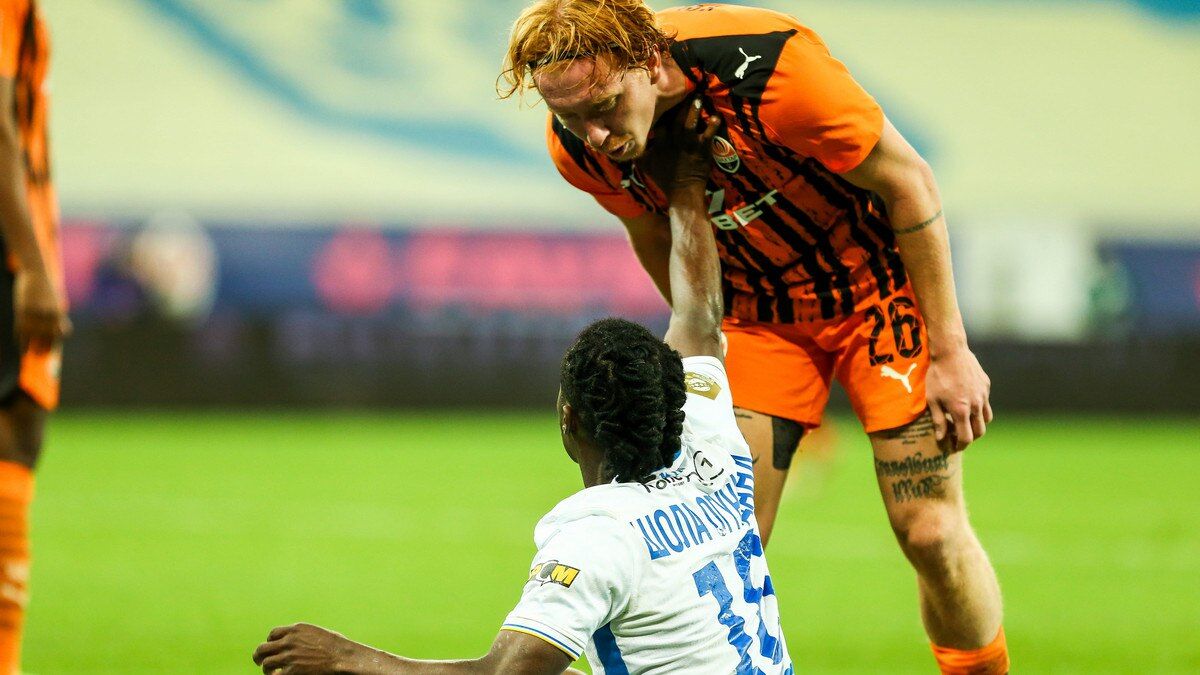 Зазначимо, що на 60-й хвилині за рахунку 2:1 Юхим Конопля у власному штрафному майданчику збив Шолу Огундану.