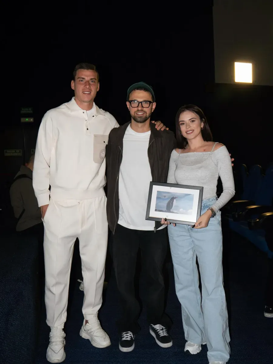 Український воротар мадридського Реала та національної збірної України Андрій Лунін разом із дружиною Анастасією побував на прем'єрі документальної стрічки Антона Птушкіна «Антарктида».