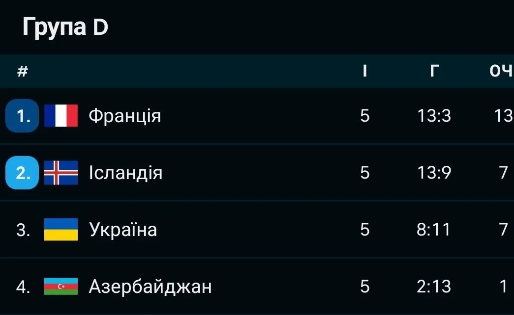 - Україна займає третє місце у своєму квартеті, а Франція після цієї гри забезпечила собі вихід на чемпіонат світу-2026.