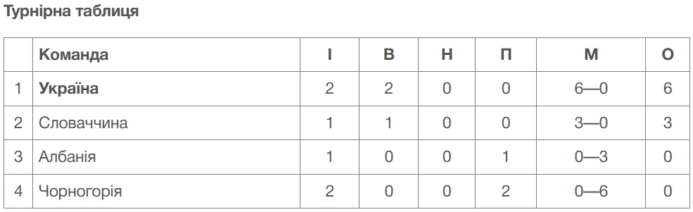 - Зазначимо, що збірна України, набравши шість очок, вийшла на перше місце в групі.