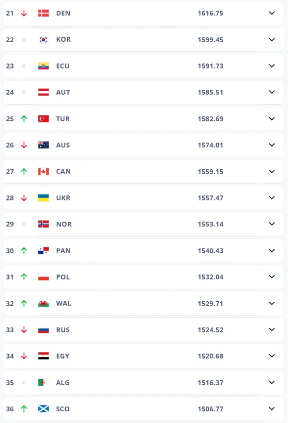 Національна збірна України з футболу втратила одну позицію в рейтингу ФІФА за підсумками вирішальних матчів відбору до чемпіонату світу-2026.