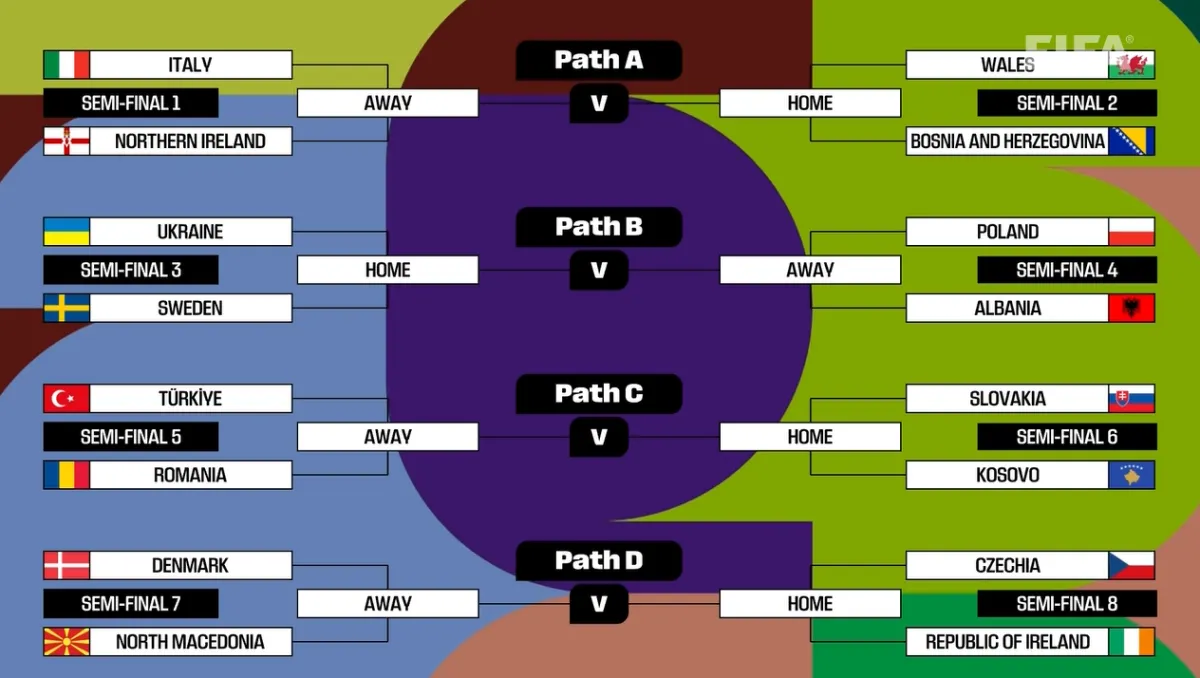 Результати жеребкування плей-оф відбору до ЧС-2026 для України