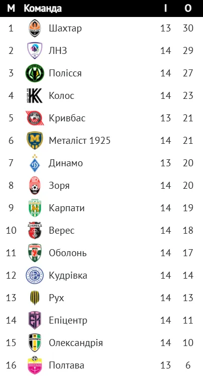 Полісся обіграло Зорю завдяки голам Гуцуляка та Назаренка: турнірна таблиця УПЛ перед матчами Динамо і Шахтаря