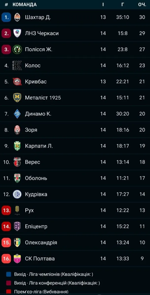 УПЛ. 14-й тур