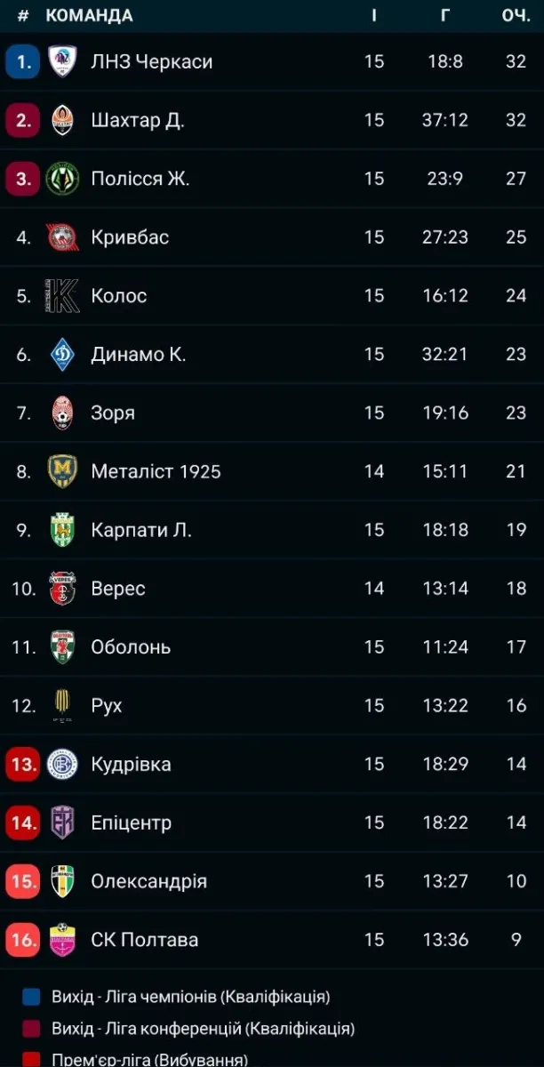 УПЛ, 15-й тур