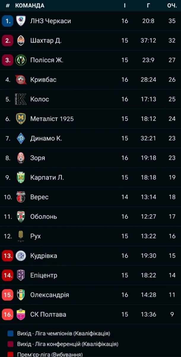 - Зоря займає восьму сходинку турнірної таблиці УПЛ.