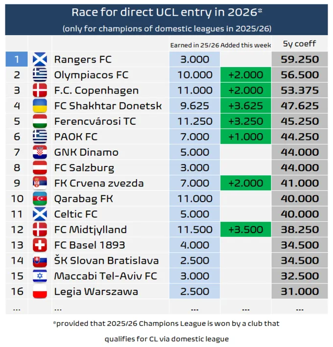 Попереду Шахтаря в рейтингу розташувалися Рейнджерс (59.250), Олімпіакос (56.500) та Копенгаген (53.375).