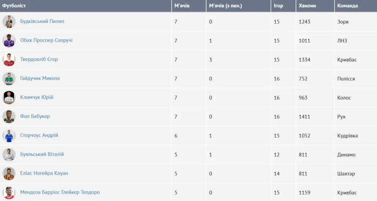 Топ-10 бомбардирів УПЛ станом на кінець 2025 року