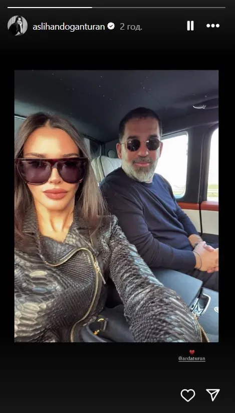 Асліхан Доган Туран, дружина турецького головного тренера Шахтаря Арди Турана, в сторіс своєї сторінки в Instagram поділилася новим фото зі своїм відомим чоловіком.