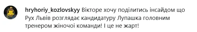 Перед цим президент Руху Григорій Козловський заявив, що бажає запросити фахівця до жіночої команди свого клубу, причому зробив це в коментарях в Instagram журналіста Віктора Вацка.