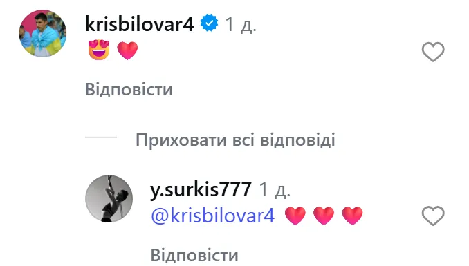 Не зміг пройти повз відвертих фотографій своєї дружини і Крістіан Біловар, а пара мило обмінялася емодзі із сердечками, підтвердивши гармонію у своїх стосунках.