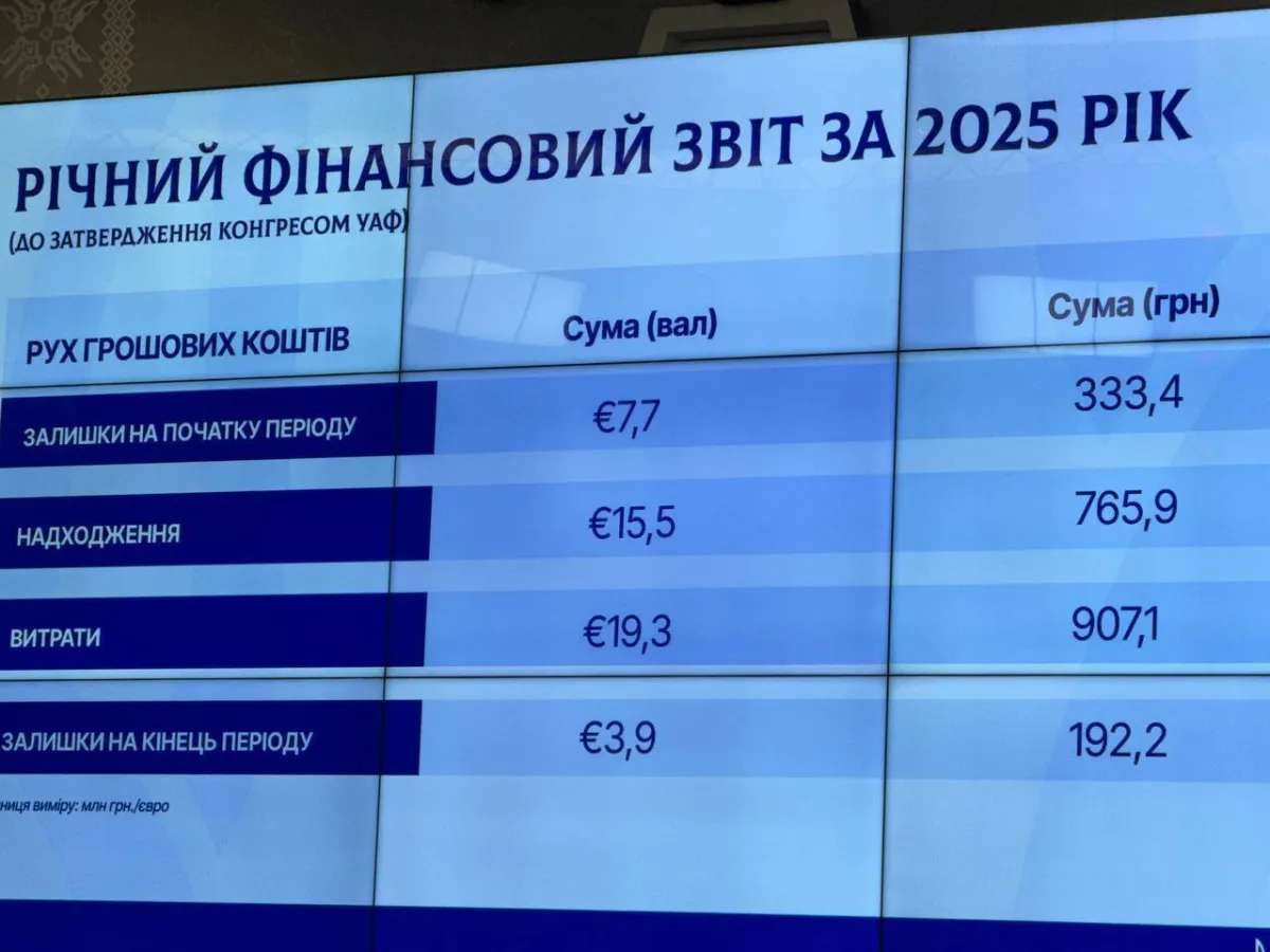 Окремо фінансова директорка УАФ Наталія Осколок представила фінансові підсумки: на старті 2025 року асоціація мала 7,7 млн євро залишків, а завершила рік із 3,9 млн, при тому що на початок 2024-го на рахунках було лише 0,4 млн євро, а основний приріст, 7,3 млн, забезпечено саме протягом 2024 року.