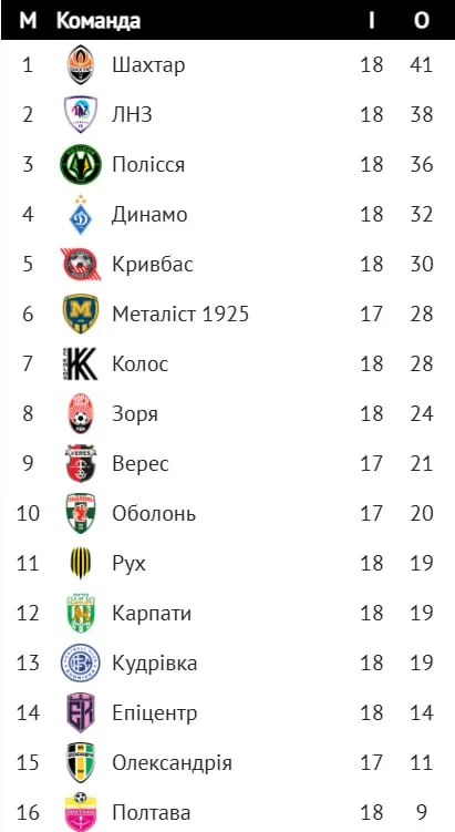 Завершено 18-й тур УПЛ: відомі місця Шахтаря, ЛНЗ та Динамо в оновленій турнірній таблиці
